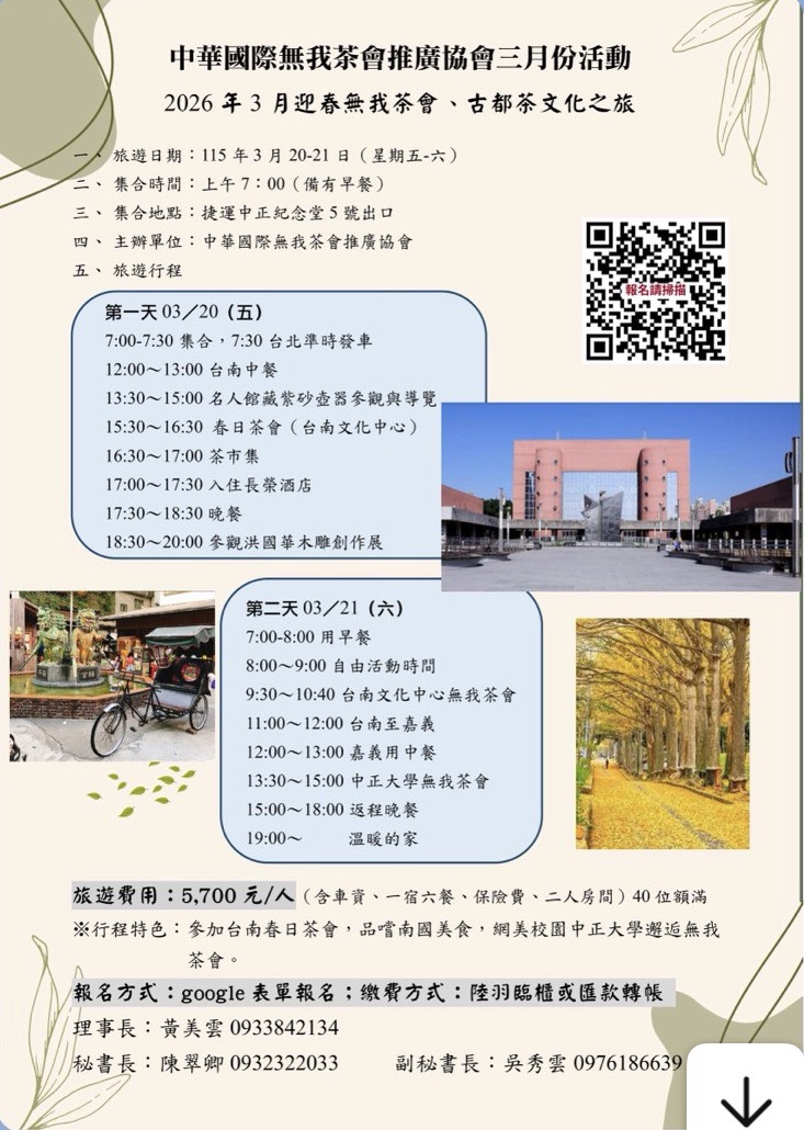 2026.03.20 三月份活動-2026年3月迎春無我茶會、古都茶文化之旅